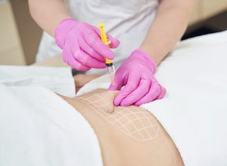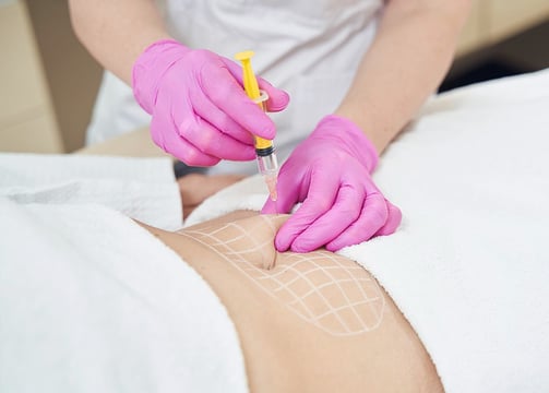 Aplicação injetável para redução de medidas, promovendo a lipólise das células de gordura.