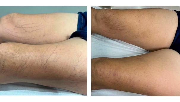 Trata vasinhos roxos ou avermelhados com aplicação de ativos esclerosantes de forma minimamente invasiva.